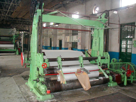 高速復卷機,用于將紙機上初步卷成的原紙卷進行縱切,復卷成符合寬度和緊度要求的成品紙卷。